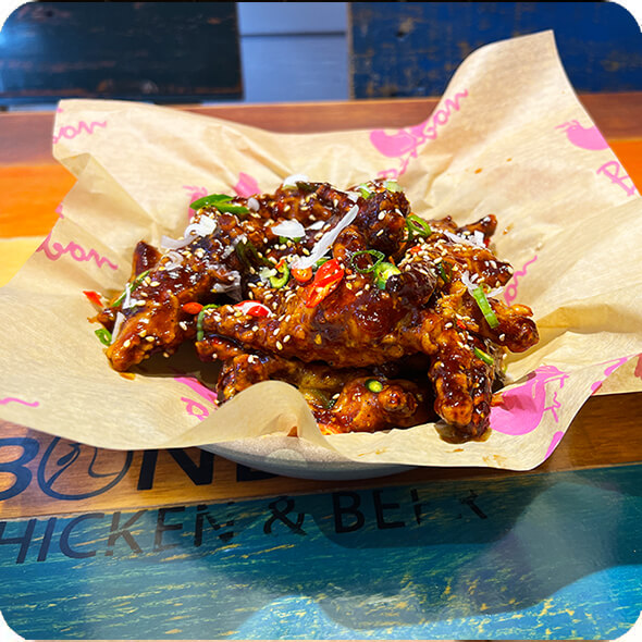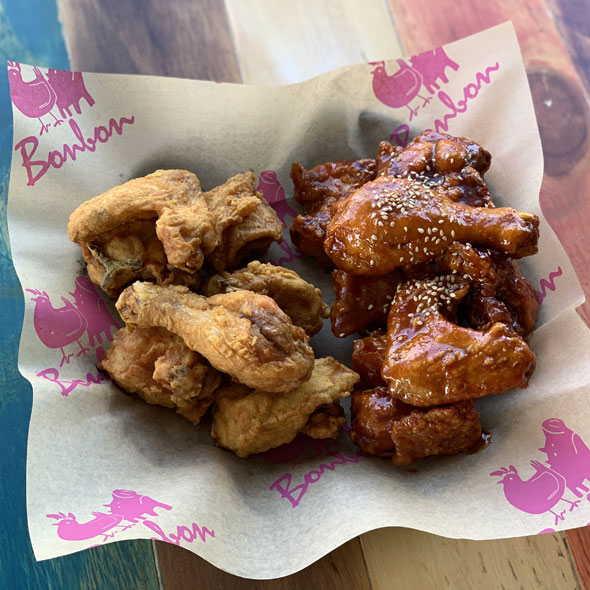 Bonbon Chicken and Pizza in Suwanee is praised for its signature Korean-style fried chicken, spicy popcorn chicken, and unique pizza options like the sweet potato and bulgogi pizzas. Customers often highlight the crispy, flavorful fried chicken and enjoy the creative fusion of Korean and Western flavors. .