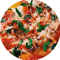 Chewy rice cakes smothered in spicy sauce and melted cheese for a creamy