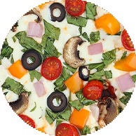 Tomato Sauce Base, Mozzarella Cheese, Corn, Red Onion, Green Pepper, Red Pepper, Mushroom, Tomato, Olive, Jalapeno