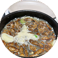 A savory soup made with silkworm pupae, seasoned with spices and vegetables
