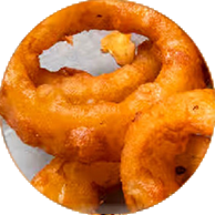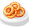 Crispy, golden onion rings with a crunchy coating and sweet inside.