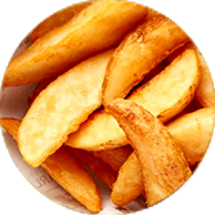 Thick-cut potato wedges, crispy outside, soft inside, seasoned to perfection.