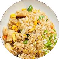 Stir-fried rice with vegetables,and Chicken lightly seasoned for a satisfying, savory taste.
