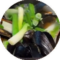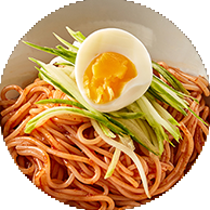 Spicy noodles paired with whelk in a spicy, tangy sauce, topped with fresh vegetable