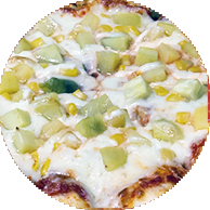 Tomato Sauce Base, Mozzarella Cheese, Corn, Red Onion, Green Pepper, Red Pepper, Mushroom, Tomato, Olive, Jalapeno