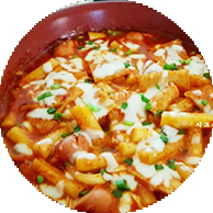 Chewy rice cakes smothered in spicy sauce and melted cheese for a creamy