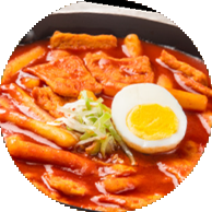 Chewy rice cakes in a spicy, sweet sauce with savory seasoning,